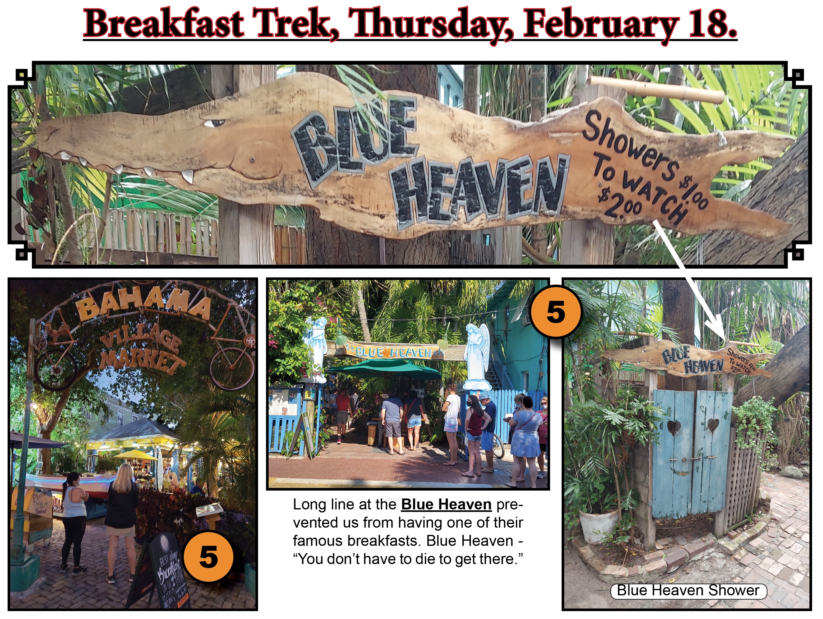 On Thursday Alice, Barry and Jack headed a couple blocks from our hotel to the Blue Heaven Restaurant & Bar (“You don’t have to die to get there.”) restaurant for one of their famous breakfasts’ in the Bahama Village. We were planning our initial old Town Trolley tour to begin that day and did not want to delay it with a long wait.