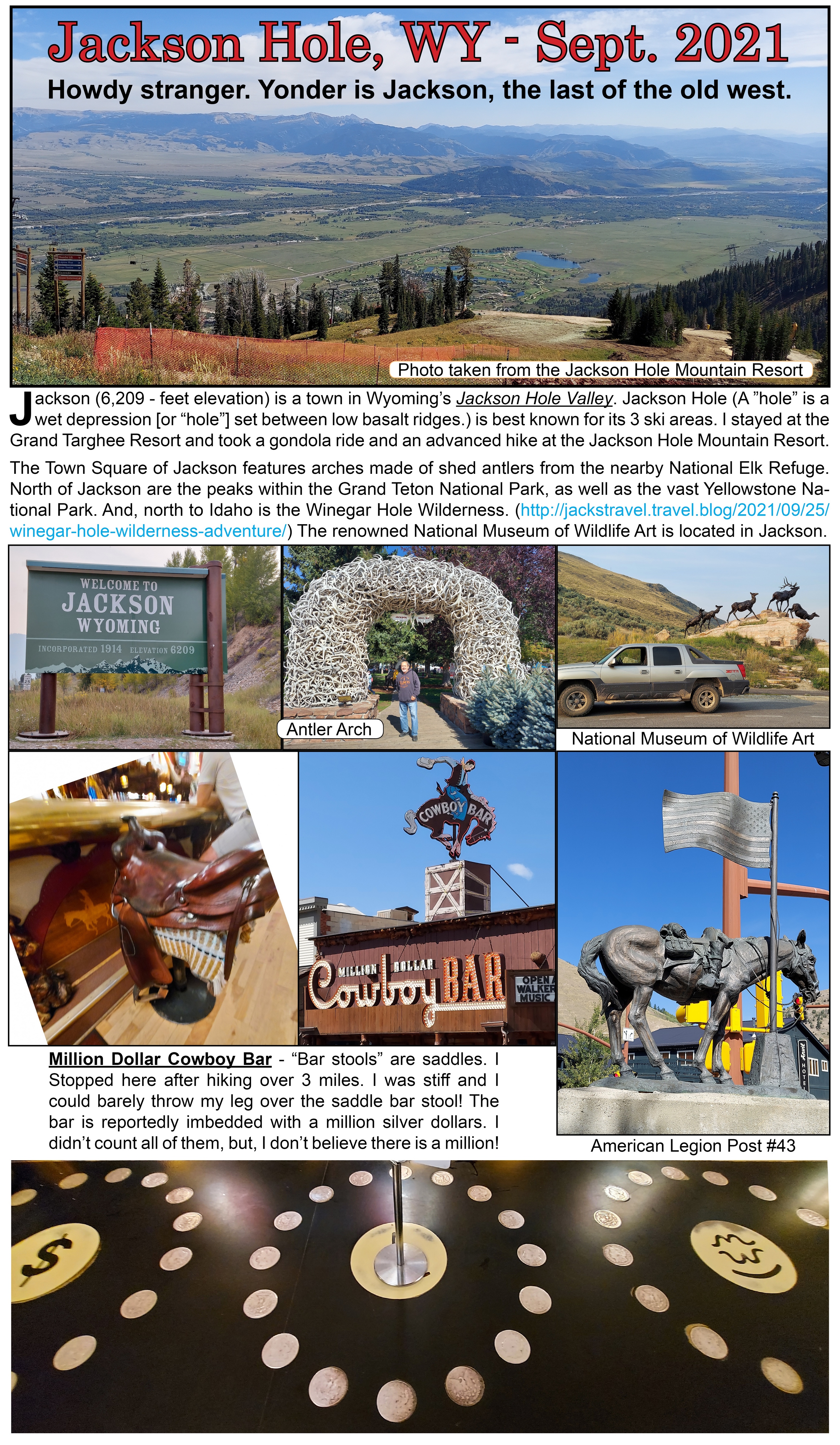 Jackson Hole, Wyoming is a place unlike any other. Truly an American original. Jackson Hole is widely known as one of the top ski destinations in the world. I was there in the summer when the ski resorts are changed to Mountain Bike Parks. And, where I took a couple high elevation exhilarating hikes.