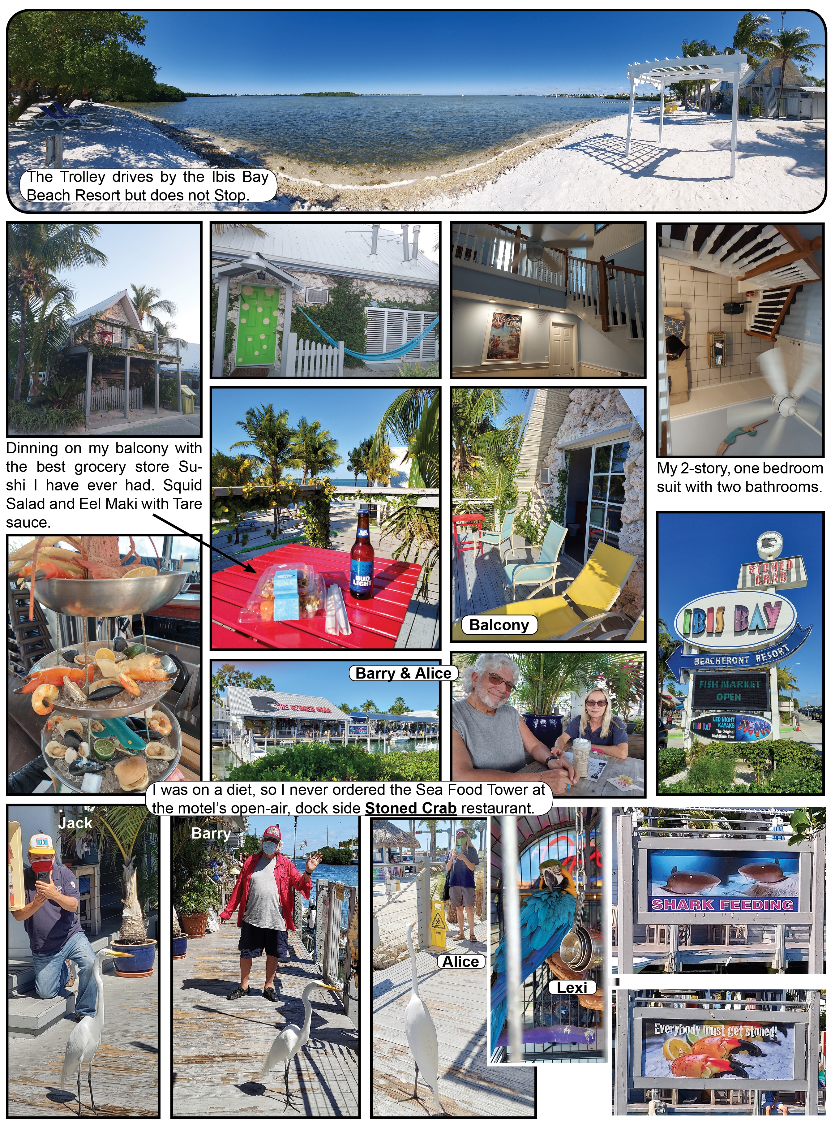 My original plan was to take a day cruise (70 miles in the open ocean) to the isolated Dry Tortugas National Park and the 16 acre Fort Jefferson (largest brick structure in the Americas). I waited too long to make reservations, the reason for extending my time in Key West at the Ibis Bay Beach Resort. These cruises were canceled because of choppy waters from Small Craft Warnings.
